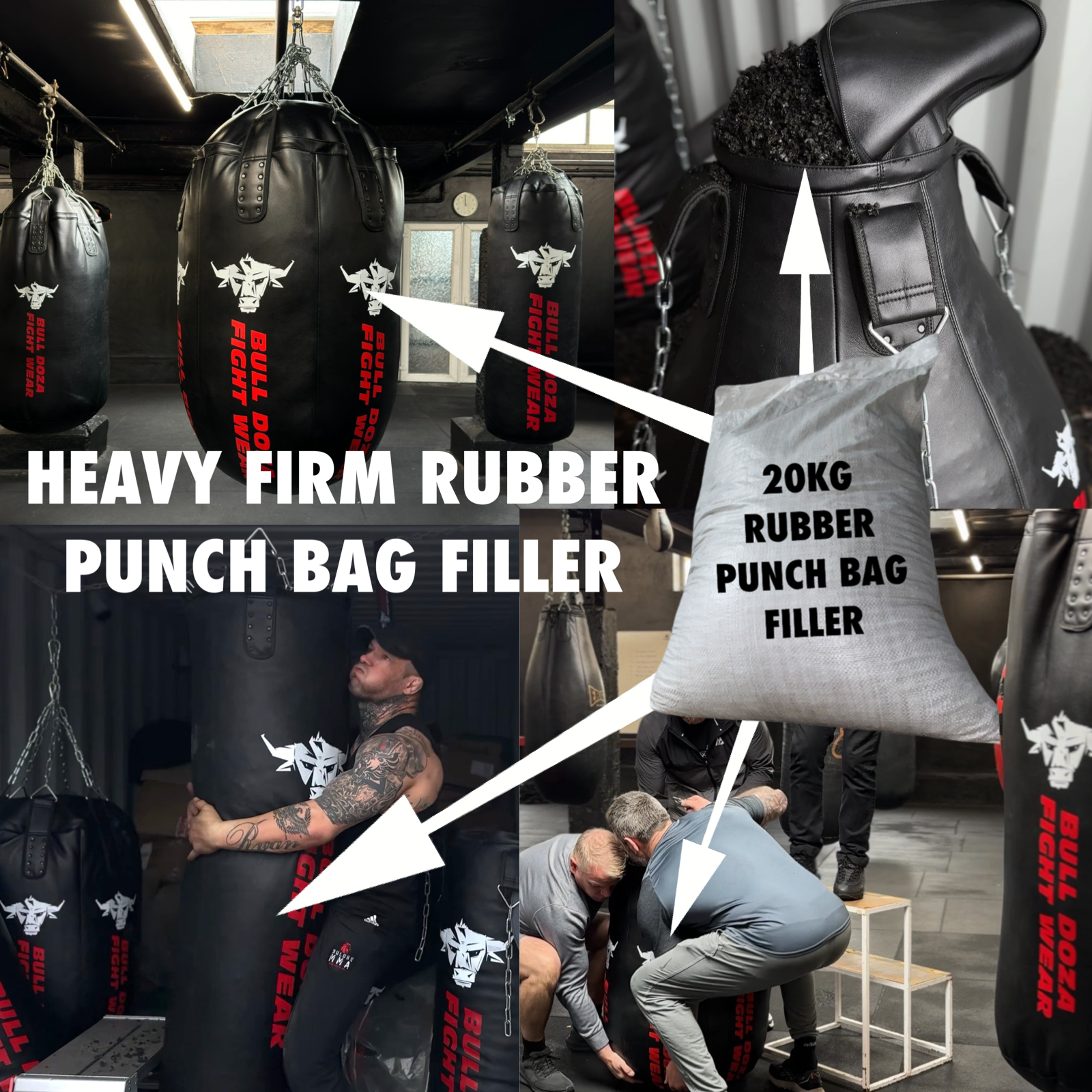 Professional fighters require the best training equipment to achieve peak performance, and the type of punch bag stuffing plays a crucial role. Rubber filler stands out as the preferred choice due to its superior shock absorption, consistent density, durability, eco-friendliness, realistic training experience, low maintenance, cost-effectiveness, and versatility. At Bull Doza Fight Wear, we are proud to offer rubber filler that meets these high standards and supports the training needs of professional fighters. Invest in the best, and experience the Bull Doza difference.